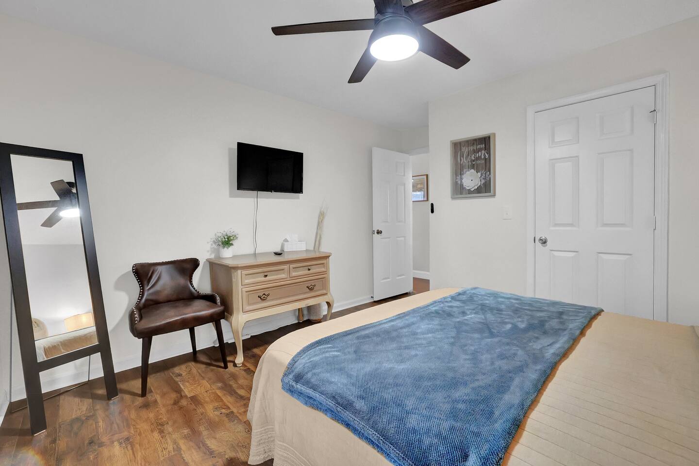 In our home, guests will enjoy a beautifully renovated space featuring 3 bedrooms, including 1 king bed, 2 queen beds there is a cozy living room with a sofa bed, for extra guests. A fireplace, a large smart TV, and plenty of seating, perfect for relaxing or enjoying board and card games with loved ones. The master bedroom offers a private en-suite bathroom and a walk-in closet for added comfort. You’re welcome to use the grill for free but please clean after your use, a fee of $20 will be added otherwise. Enjoy a cup of coffee or your favorite beverages on the lovely back porch where you can listen to the birds chirping. Please remember this is our house that we care about and love so much! So please treat the space with respect, love, and kindness by keeping the space clean before you leave (respect our properties in the house). We really appreciate your understanding and cooperation in advance. Have a nice trip and enjoy your stay! I’m